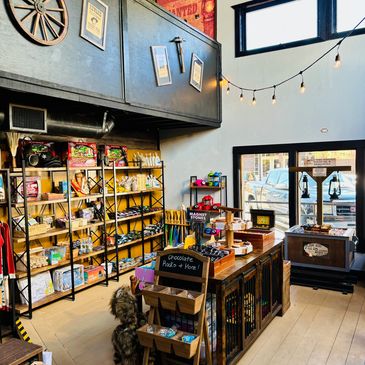 The Mercantile is such a fun shop, stocked full of unique gifts and souvenirs! Fill a drawstring bag of glow in the dark stones, magnet stones or tumbled stones from our mining ore cart & crack open a crystal geode on our wooden stump! Just some of our popular items include old fashioned cap guns, Tombstone clothing, old fashioned candy,